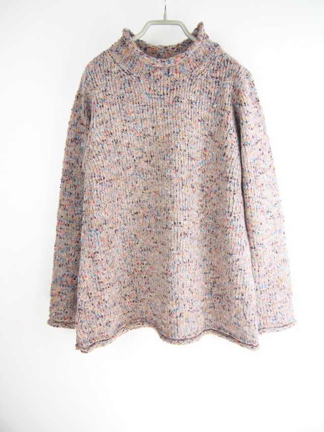 「ミックスウール+カラフルネップ」カールハイネックワイドプルオーバー(グレーベージュ)