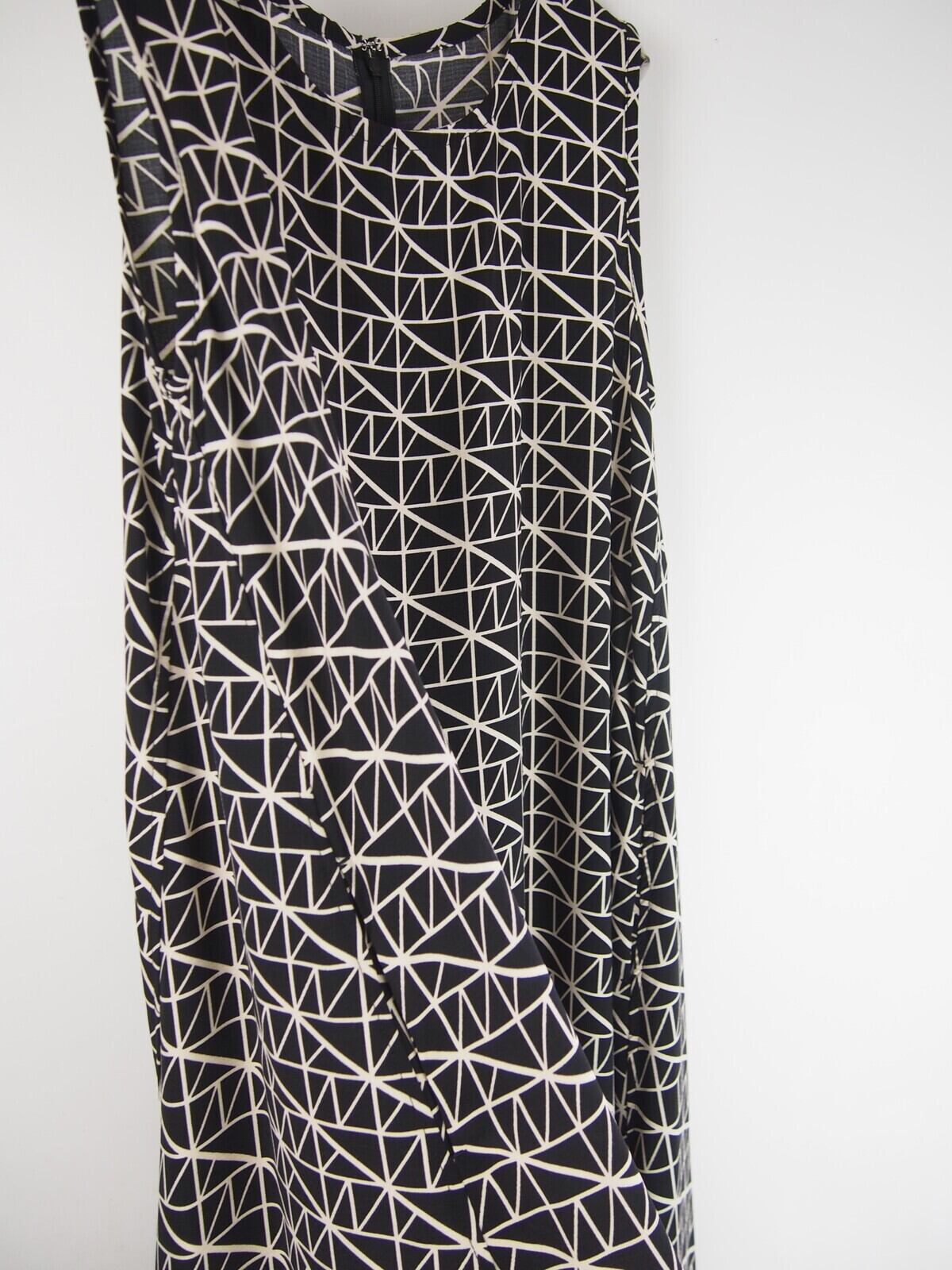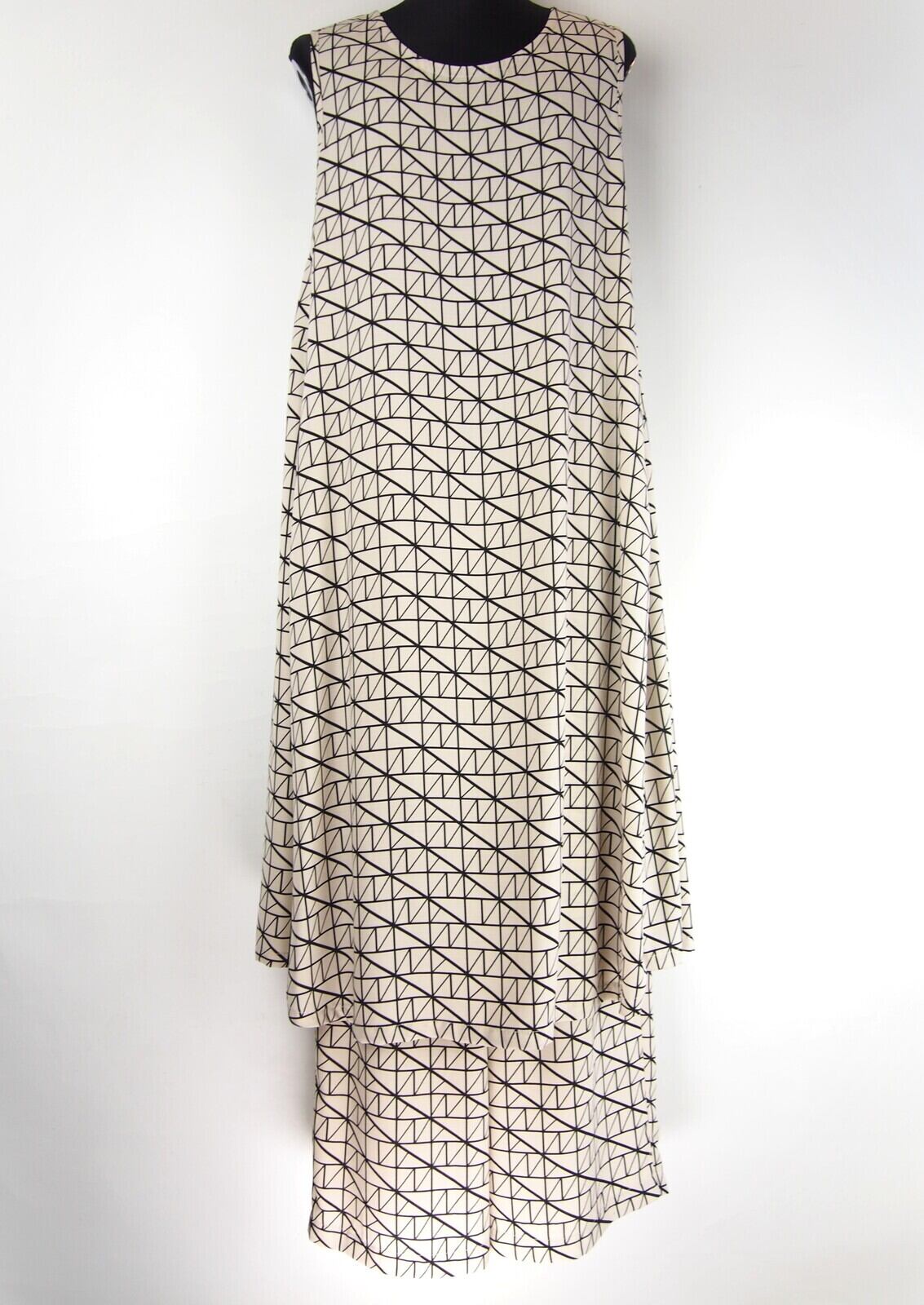 肌離れの良い梨地タッチのドライポリエステルを使用し、滑らかで上品なドレープを作るジオメトリックプリントシリーズ。