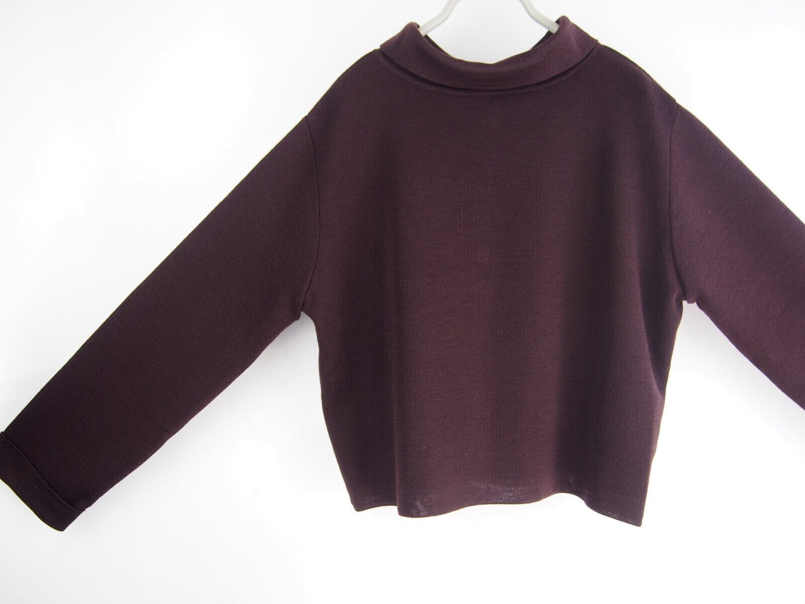 一方はロールネックタイプのプルオーバー、もう一方ではスモールカラーのカーディガン、前後それぞれで異なるスタイリングが楽しめるな2WAYタイプ。