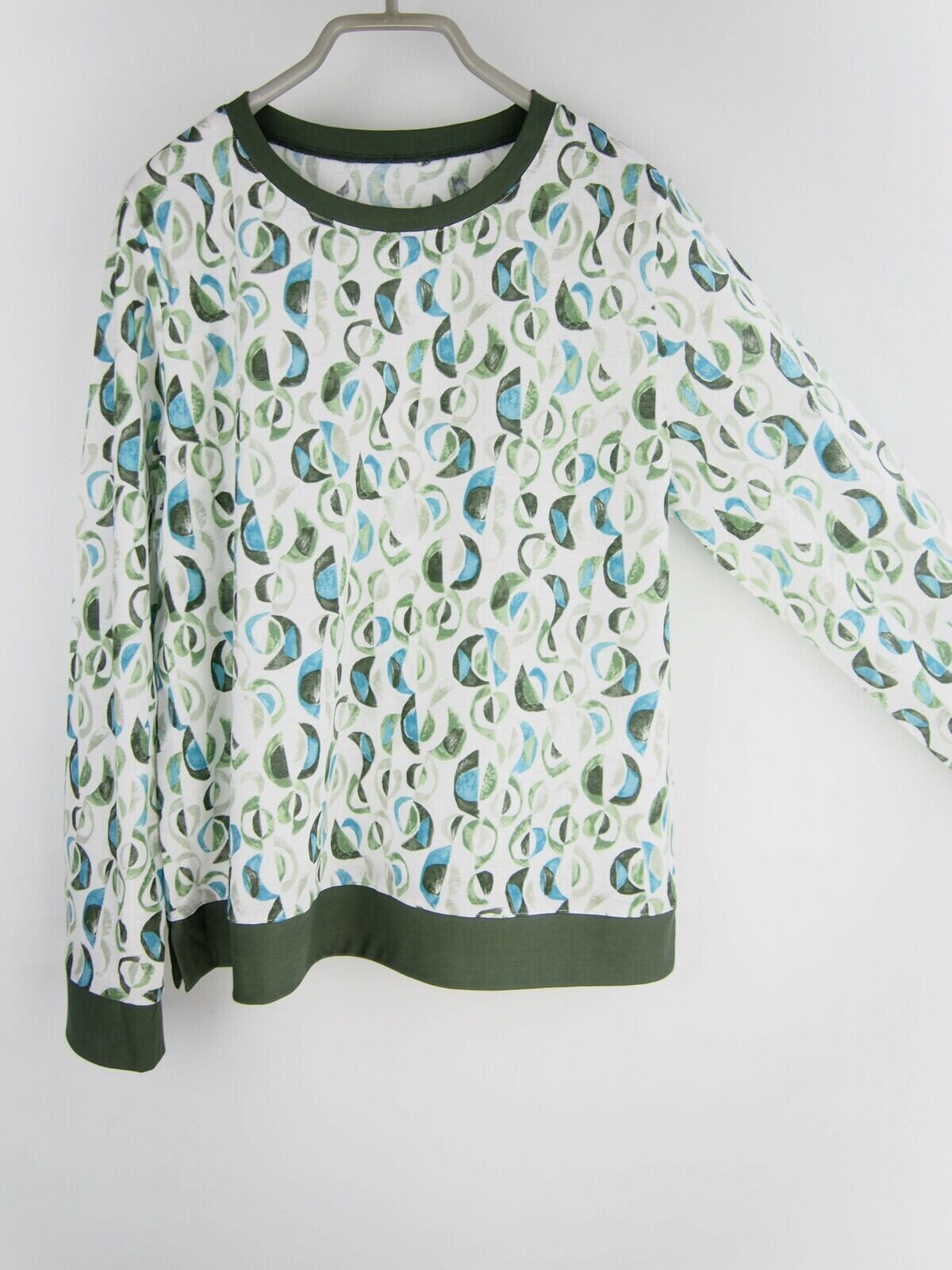 【日本製】「強撚綿クレセントプリント」トリミングワイドプルオーバー(グリーンベース)