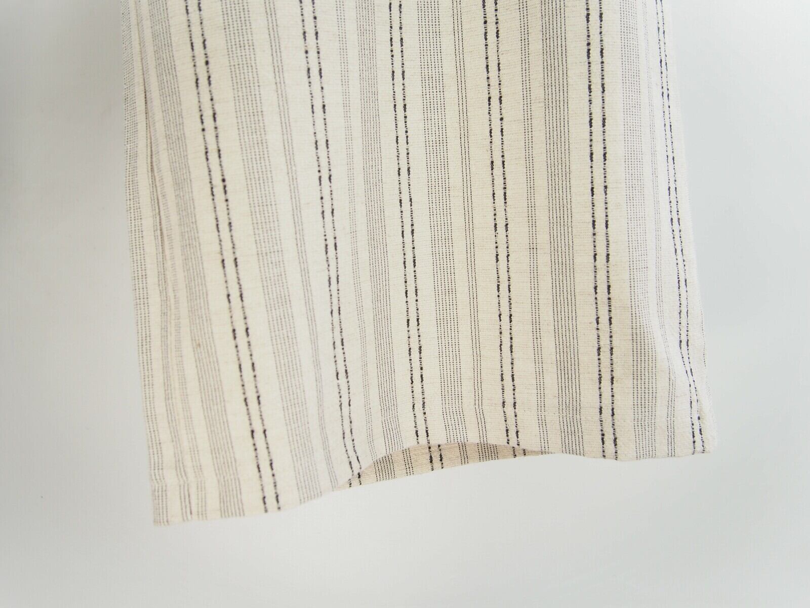 柔らかなコットンと耐久性にも優れたポリエステルボディに清涼感のあるリネンスラブがミックスされたランダムストライプクロス。