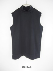 首元を優しく包むダブル仕様のハイネックの綺麗な立ち上がり、フラットなヘムラインを作る両サイドのスリットディティール、アームホール部分のバインダーは弾力を加えたフィット感が 気持ち良く作用する快適な着心地です。