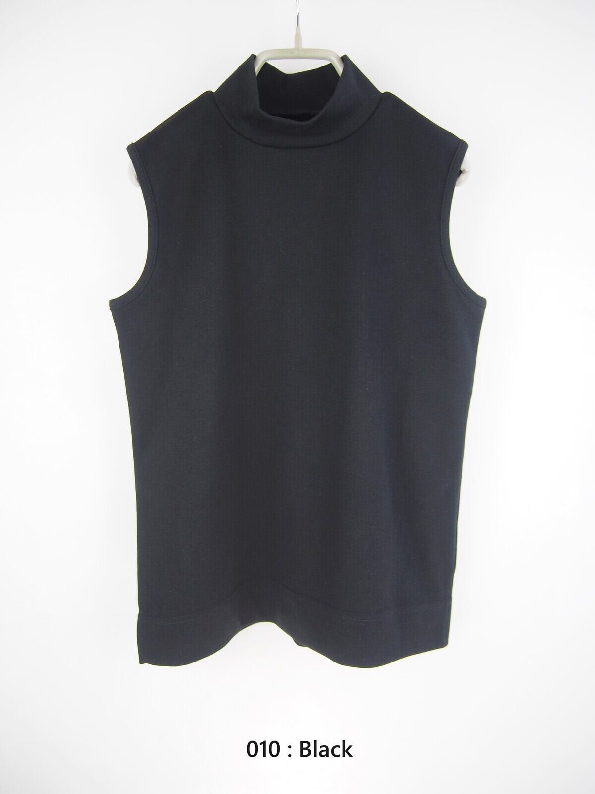 【日本製】「100双糸コットンフライス」ハイネックノースリーブ(ブラック)