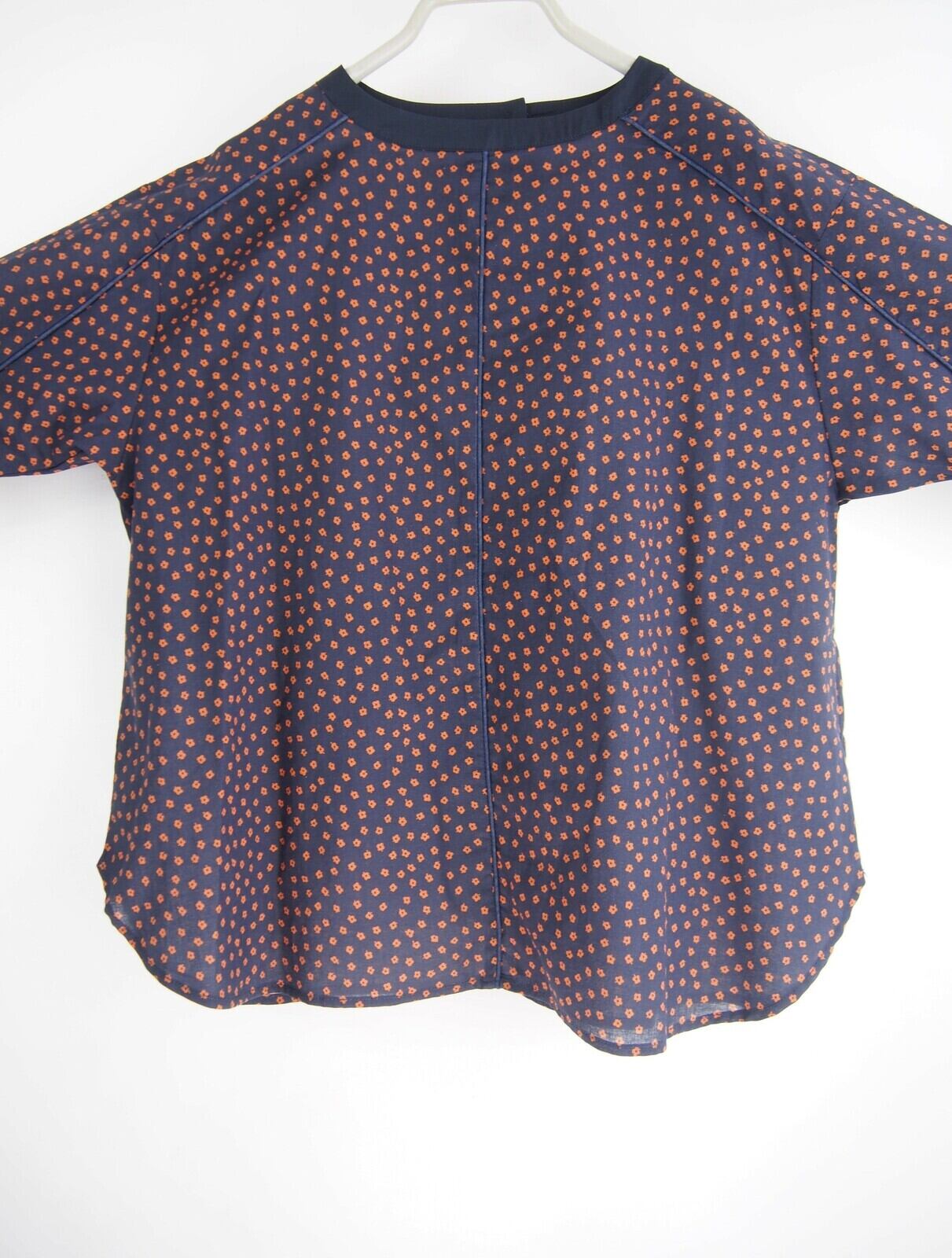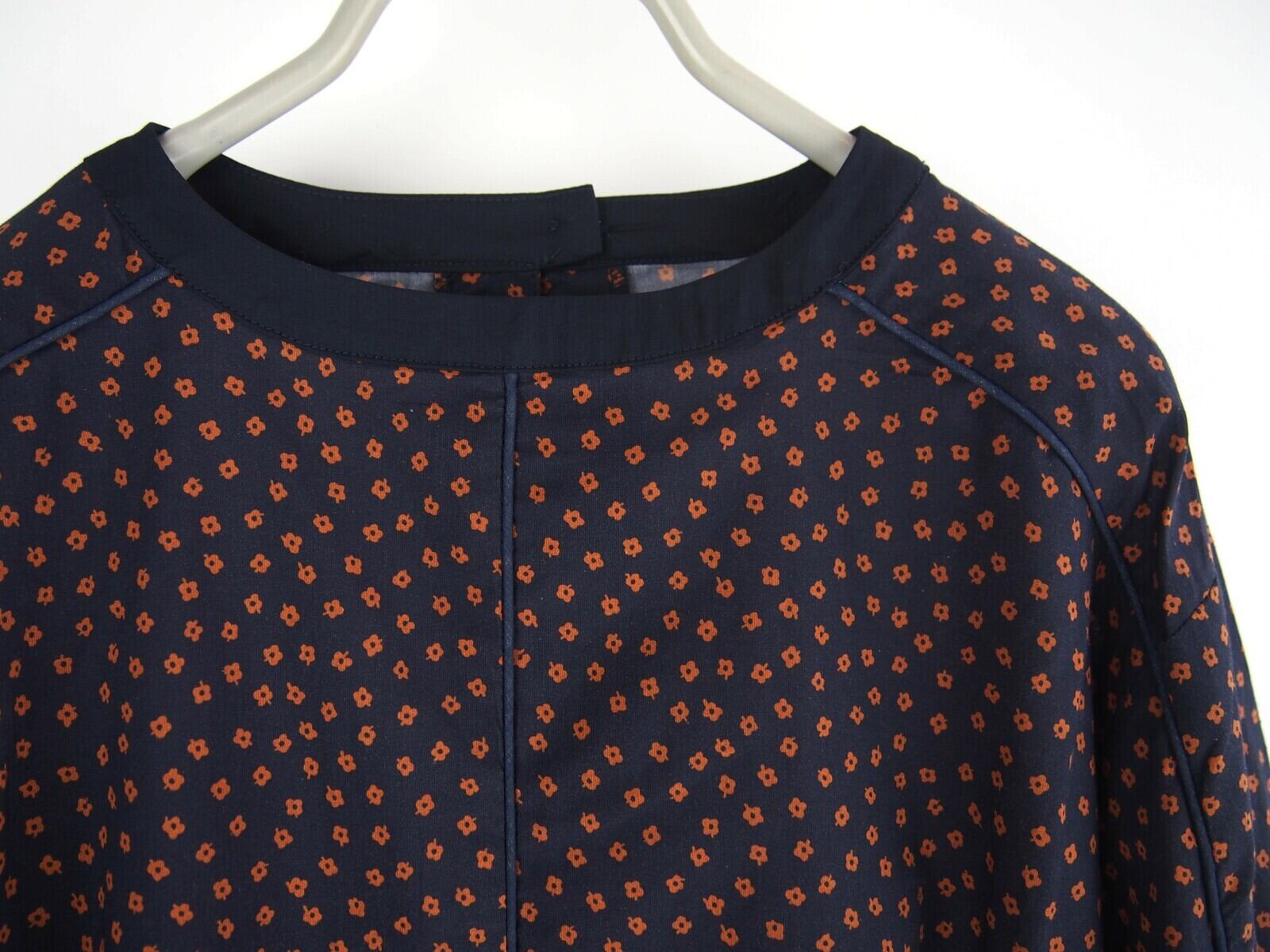 「綿ローンプチフラワードットプリント」パイピングワイドブラウス(ネイビー+オレンジ)
