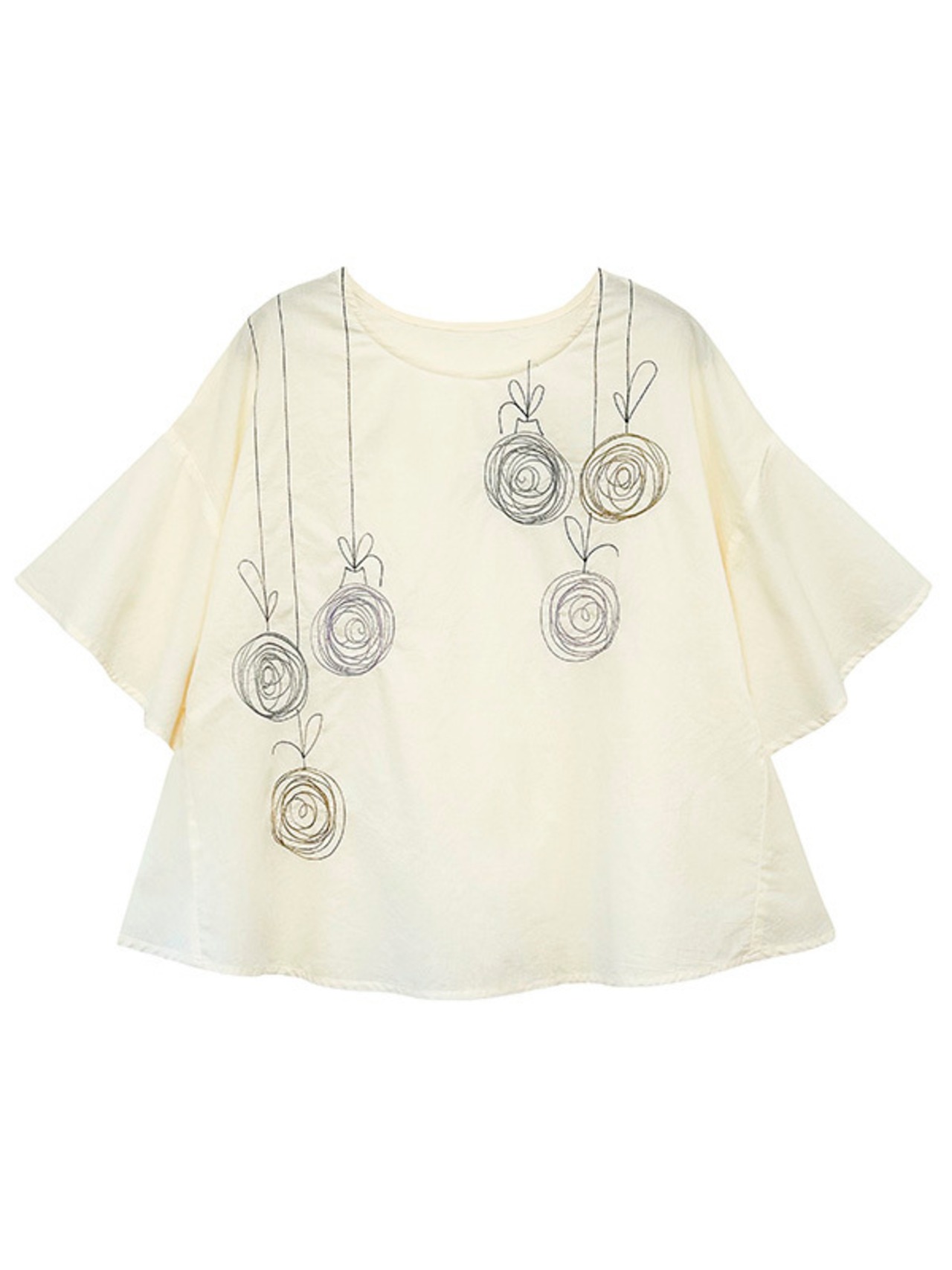 夏祭りのヨーヨーのような風船が上から下に落ちて来ている不思議な刺繍です。