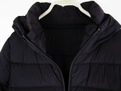 ナイロンストレッチクロス特有のとても細かくザラザラとした表面が高級感のある落ち着いた艶感です。キルトラインをアーム下から縦に使用することにより、膨らみ過ぎない曲線を作る美しいシルエットに仕上げています。