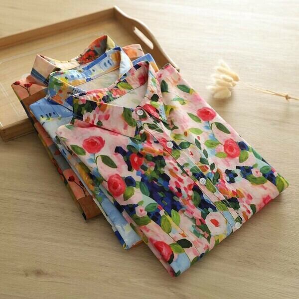 3color 綺麗なプリント柄シャツ・ブラウス(風景)